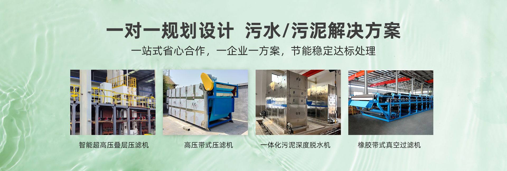 主營產(chǎn)品:超高壓疊層壓濾機、高壓帶式壓濾機、橡膠帶式真空過濾機 、帶式濃縮脫水一體機、帶式壓濾機、一體式污泥深度脫水機、帶式果汁壓榨機、疊螺式污泥脫水機、轉(zhuǎn)鼓式濃縮脫水一體機、刮吸泥機、一體化污水處理設備、氣浮機、加藥裝置、輸送機、污泥料倉等設備。產(chǎn)品廣泛應用于市政污水、工業(yè)廢水、食品與飲料、畜牧養(yǎng)殖、礦山、化工、造紙、制藥等領域。